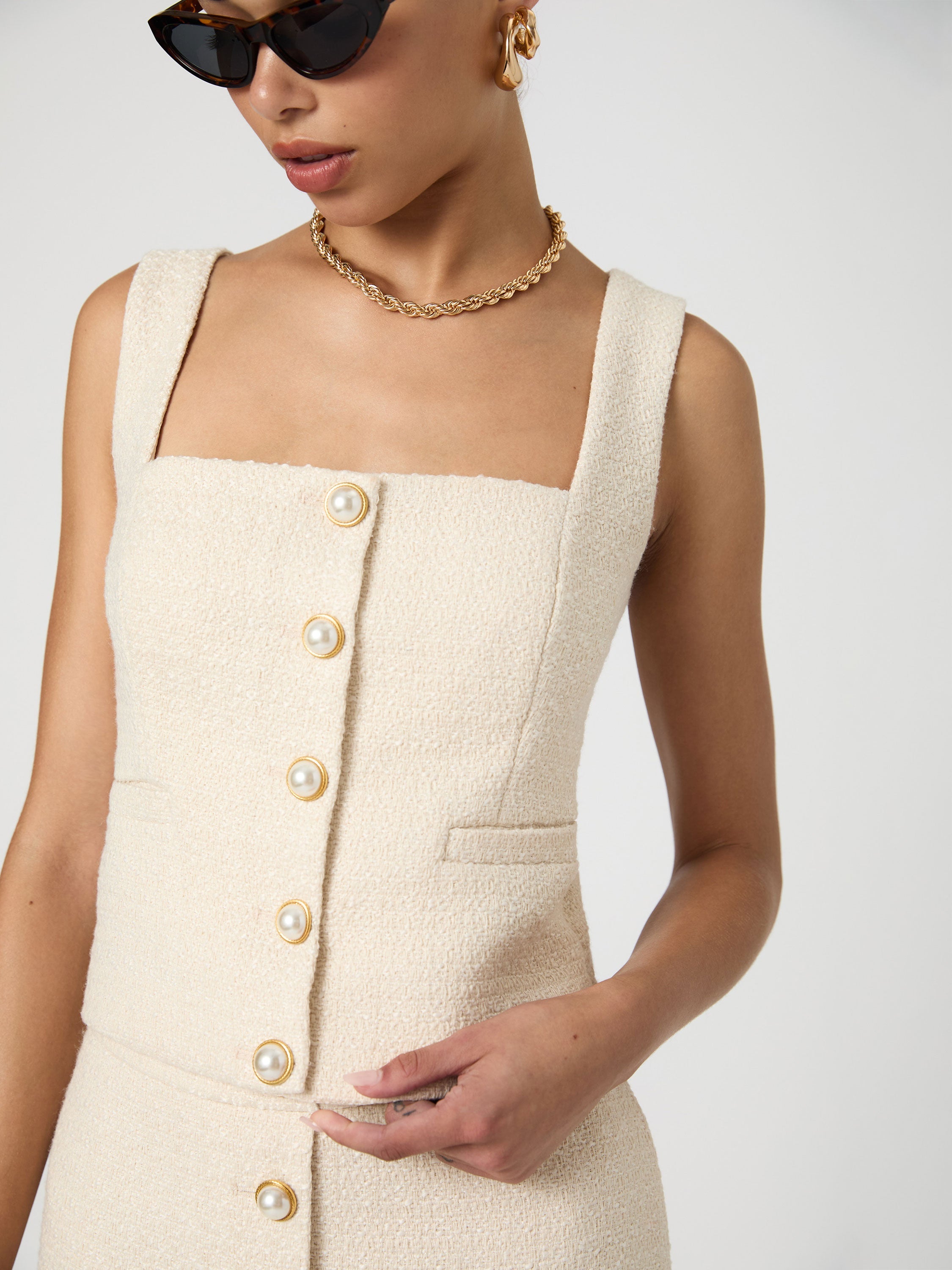 Structured Tweed Button Front Top Structured Tweed Button Front Top