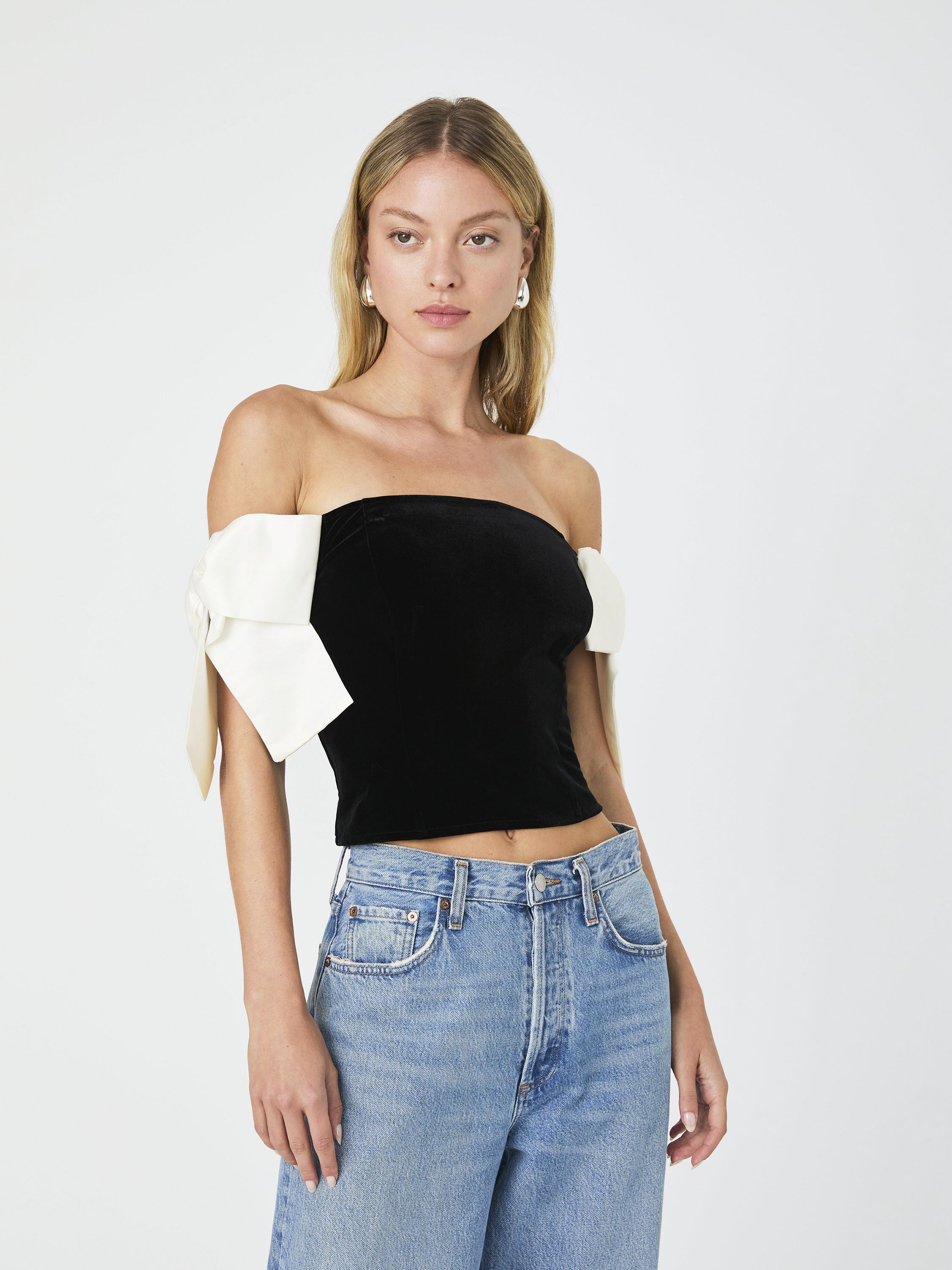 Velvet Satin Bow Strapless Top Velvet Satin Bow Strapless Top