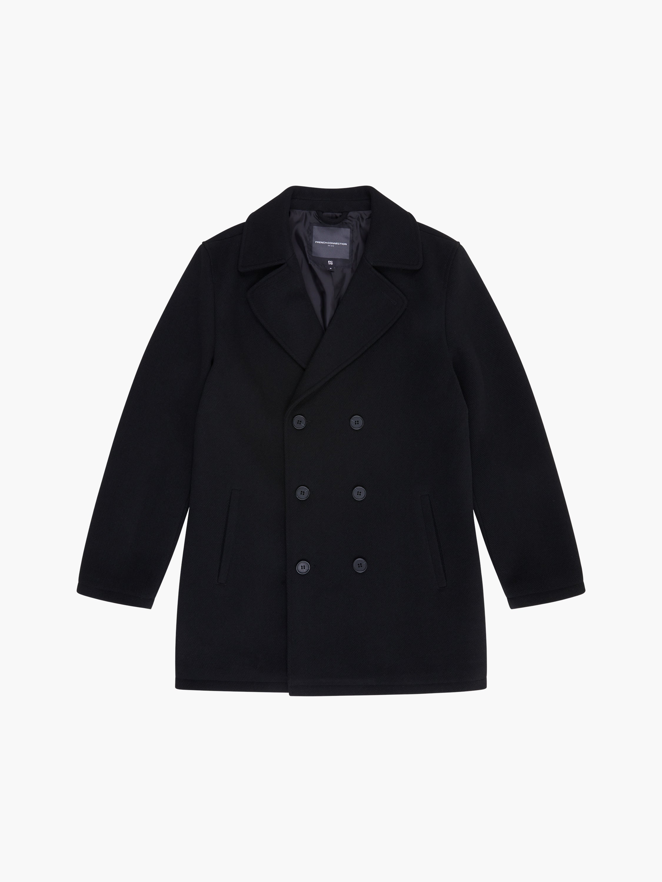 Our Pea Coat will have you looking sharp, no matter your plans. This soft wool blend men's outerwear style offers comfort and refinement with a split lapel collar, double breasted fastening and trio of pockets for practicality.